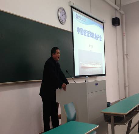 在工科楼131教室进行了一场主题为“中国的远洋鱿鱼产业”的专题讲座。本次讲座主讲人为中国远洋渔业协会秘书长黄宝善老师,讲座由海渔系系主任郑基主持,王兴国、侯伟芬等老师以及A12海渔班、A12资环班全体在校生参加。