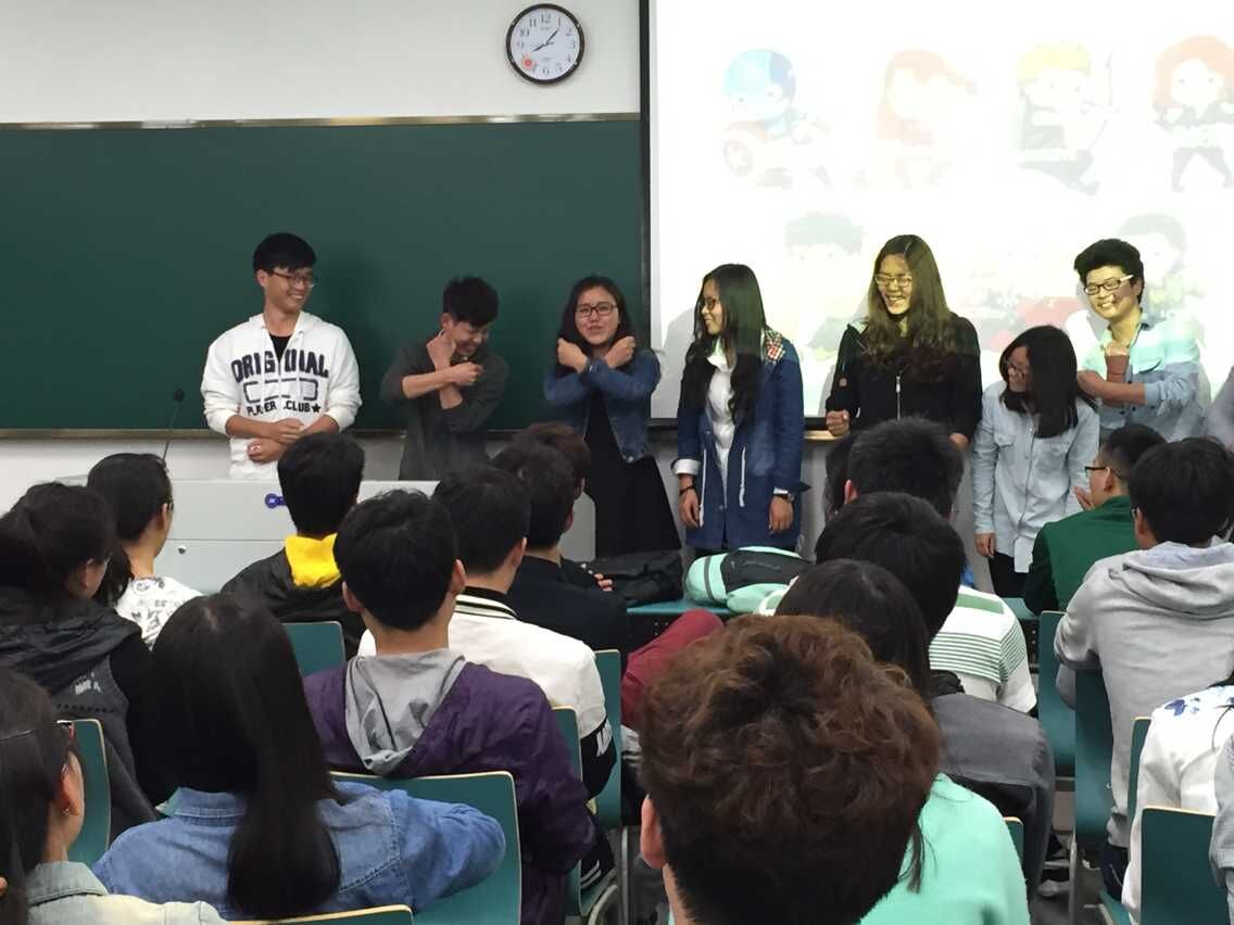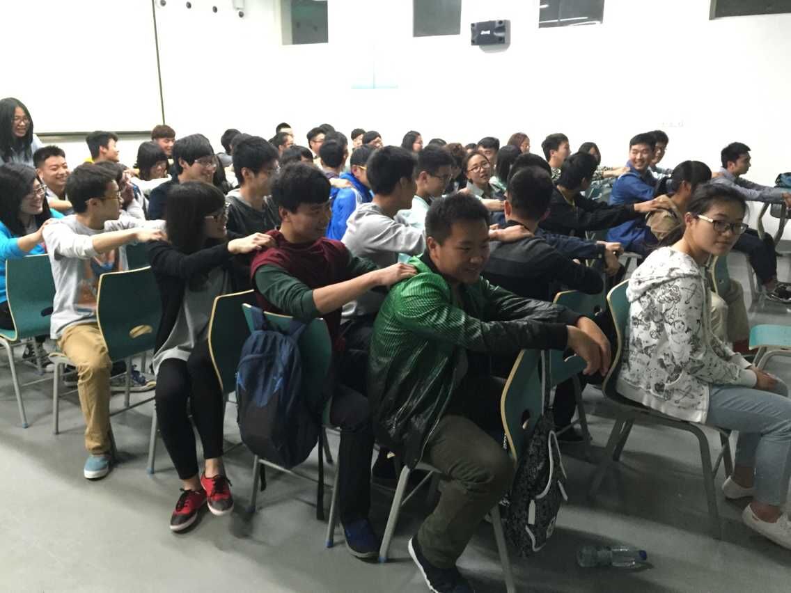 活动开始,在场人员依据每张签上均画有电影《复仇者联盟》中的一个人物进行抽签,抽到相同人物的同学成为一组。所有参与者共分成七组,每组6-8人。每组成员分别推选出本组组长并根据本组对应的人物特点取出组名、口号。各队极富特色的口号与姿势逐渐增加了组员间的亲密程度,同学们的热情也渐渐高涨。随后,全体成员在金老师的带领下开展数字传递游戏,即每组最后一名同学将自己所看到的数字通过用手在前一名同学背上划写的方式传给前一位,以此类推,第一名同学将自己感受到的数字写于纸上,用时最短且数字无差错的组获胜。每一轮比赛后均有3-5分钟时间让各组成员针对上一轮本组的比赛情况商量下一轮比赛战术。三轮比赛后得分最高的一组取得最后胜利。经过激烈的比赛,第七组取得胜利,获胜组组长交流比赛经验时谈到一个团队的良好配合以及合作的技巧在本场比赛中起到关键作用。最后,金老师对本次活动进行总结,她表示参与这类游戏就如同参与工作,学生干部在工作时不仅要讲求好方法,更应注重团队合作精神,并且在不违反原则规定的条件下学会走捷径更可以达到事半功倍的效果。