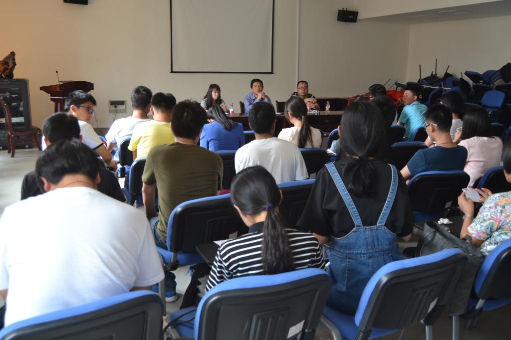 随后三位老师详细听取了毕业生关于毕业证领取、就业档案转移问题以及户口迁移问题等一系列问题,对此进行一一解答,同时详细讲解了毕业工作的安排及注意事项。在为毕业生答疑解惑的同时,虞副书记还不忘教育同学们要在工作中积极把握机遇、顺利就业,同时也强调了希望大家都能够在毕业后与母校保持联系。