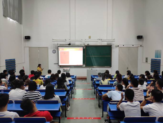 院长助理、教工第二党支部书记徐娜娜在长峙校区教学楼120教室为全院2019级本科新生讲了一堂“入党启蒙教育课”。