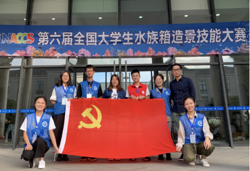 养殖系学生党支部组织支部党员积极参加我校承办的第六届全国大学生水族箱造景技能大赛志愿服务活动。