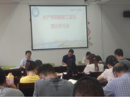 教职工大会暨政治理论学习会在海科楼263室召开,会议由学院党委副书记虞浩臣主持,全院教职工参加本次会议。
