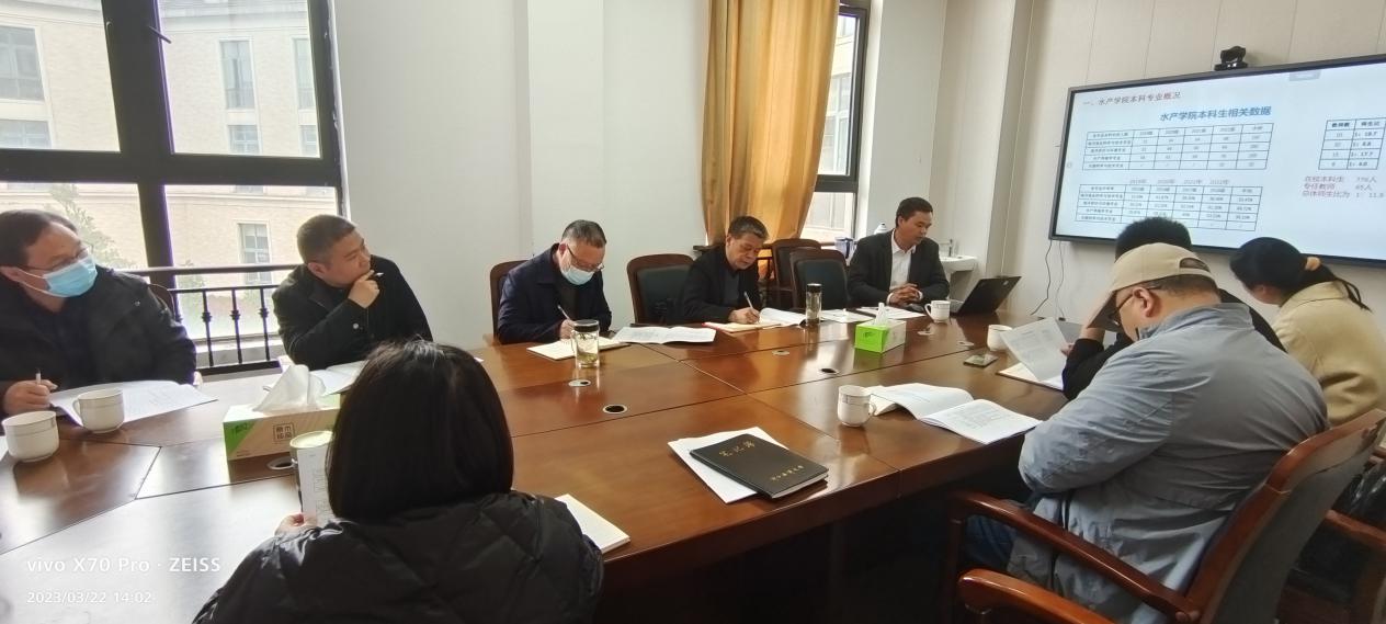 调研会上,钱副院长对我院近年来的教学工作开展情况做了总体介绍,主要汇报了学院专业设置基本情况、各专业师资情况和专业教学教研现状,存在的问题和工作举措等,同时,他还围绕即将开展的本科教育教学评估工作提出了初步工作设想。随后水族系主任王骥腾从实验室建设、加强与兄弟院校的交流和夯实基地建设等方面提出了相关意见和建议。
