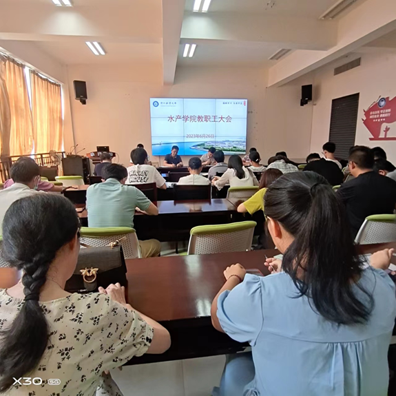 在海科楼263报告厅召开2022-2023学年第二学期期末全院教职工大会,学院全体党政班子成员及全院教职工参加会议。会议由院长王迎宾主持召开。