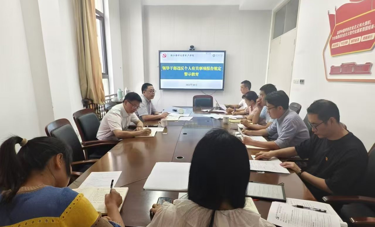 党委对学院科级及以上干部,开展领导干部违反个人有关事项报告规定警示教育。