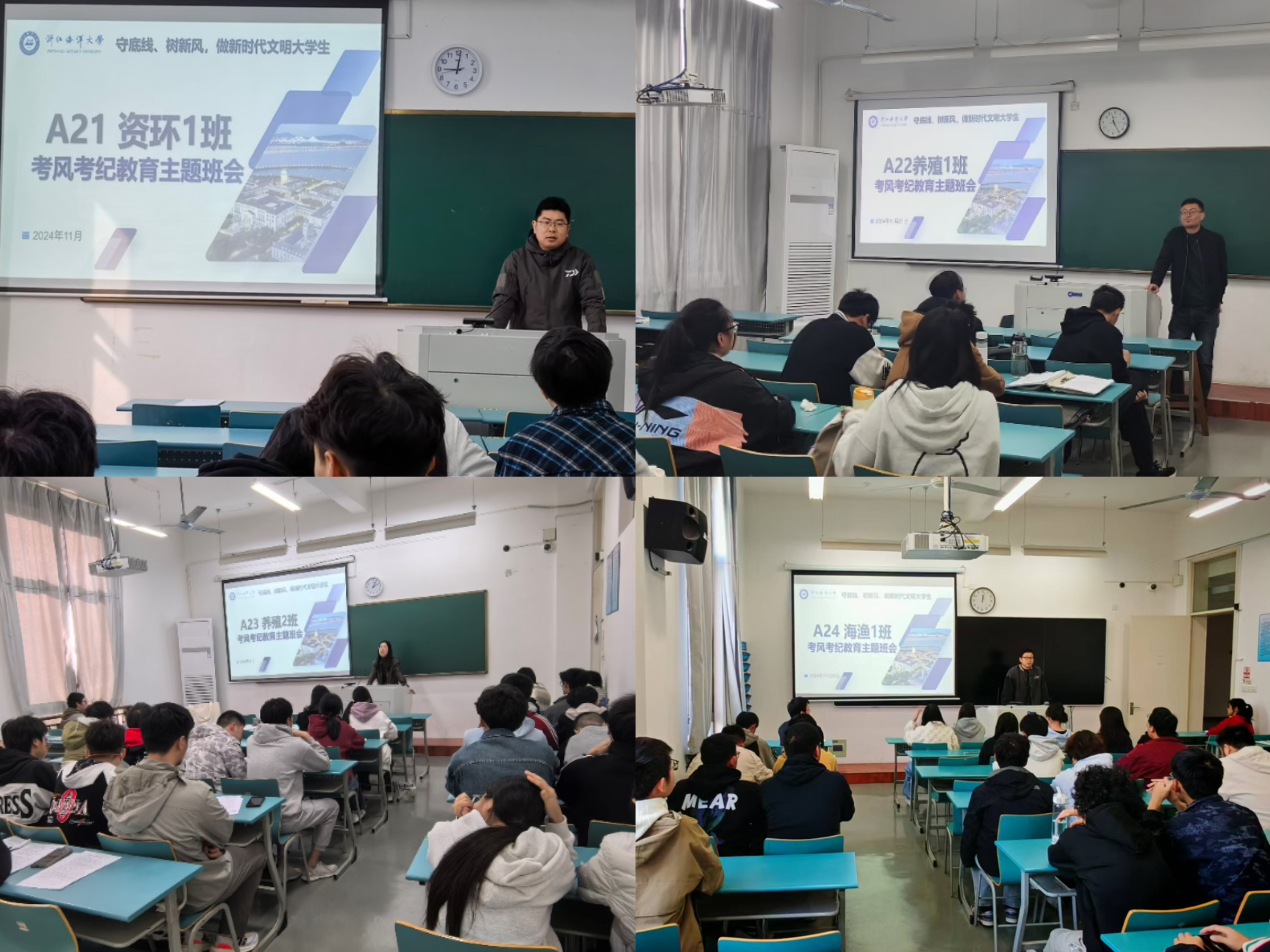 2024年11月28日,学院举办了2025届毕业生考研冲刺动员慰问暨考风考纪教育会。在会上,学院党委副书记、纪委书记付宗国,副院长钱卫国,全体班主任和辅导员为考研学子加油鼓劲,鼓舞他们在最后的冲刺阶段保持良好的学习状态和积极的心态。开展毕业生考风考纪教育,重点学习《高等学校学生行为准则》《国家教育考试违规处理办法》《浙江海洋大学本科学生违纪行为处理规定》,强化案例警示教育,严肃全国研究生入学考试纪律,进一步加强学生思想教育和行为管理,提高自律和安全防范意识,不断提高学生文明素养,规范校园行为。