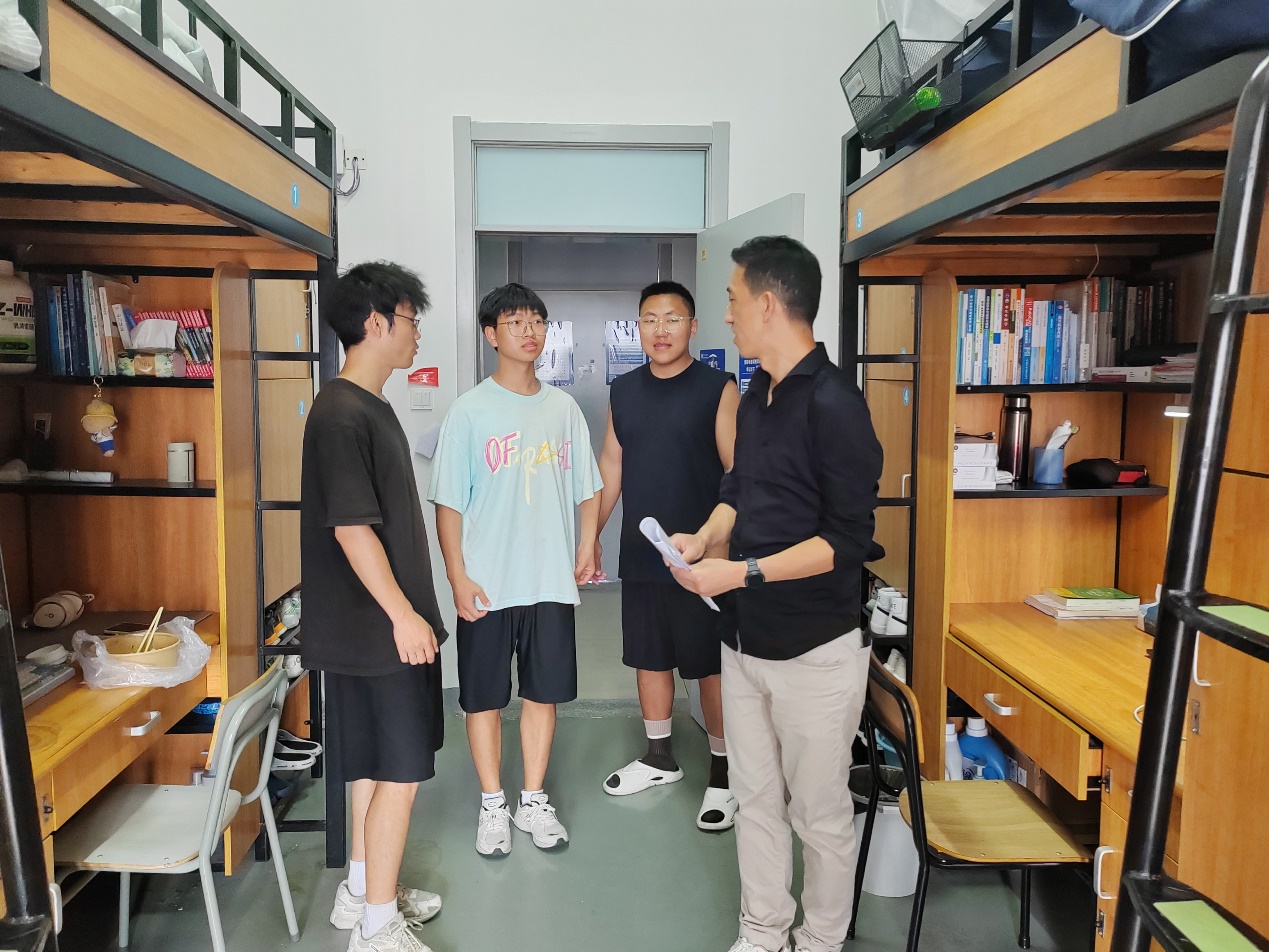 在走访过程中,付宗国重点强调了交通安全、防范诈骗、毕业生离校安全、宿舍安全以及考风考纪等方面事项。结合“交通安全月”,付宗国提醒同学们要增强交通安全意识,特别指出校园周边道路交通状况复杂,出行时要严格遵守交通规则。骑行电动车务必佩戴头盔,严禁超速、逆行、载人等危险行为。针对电信网络诈骗案件,要求同学们提高警惕,及时关注辅导员发布的典型案例,做到“不轻信、不转账、不透露个人信息”。