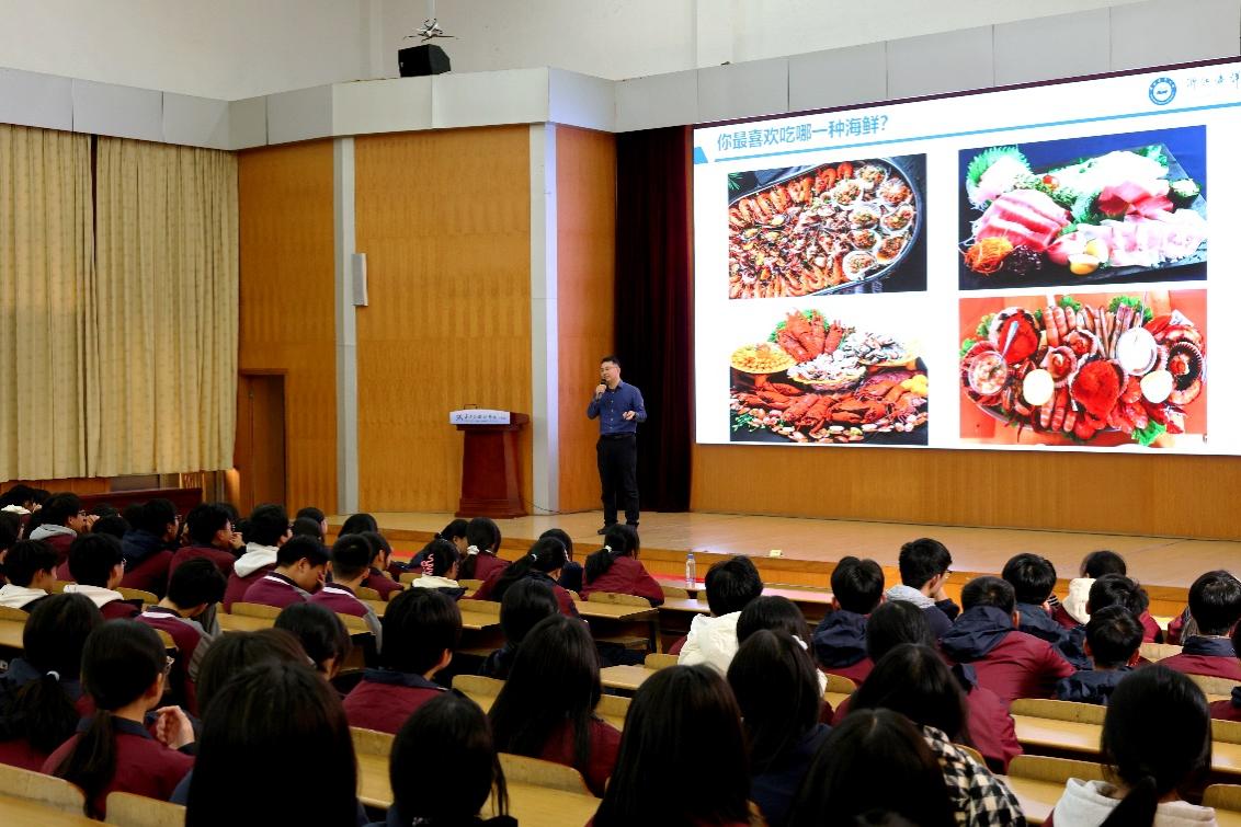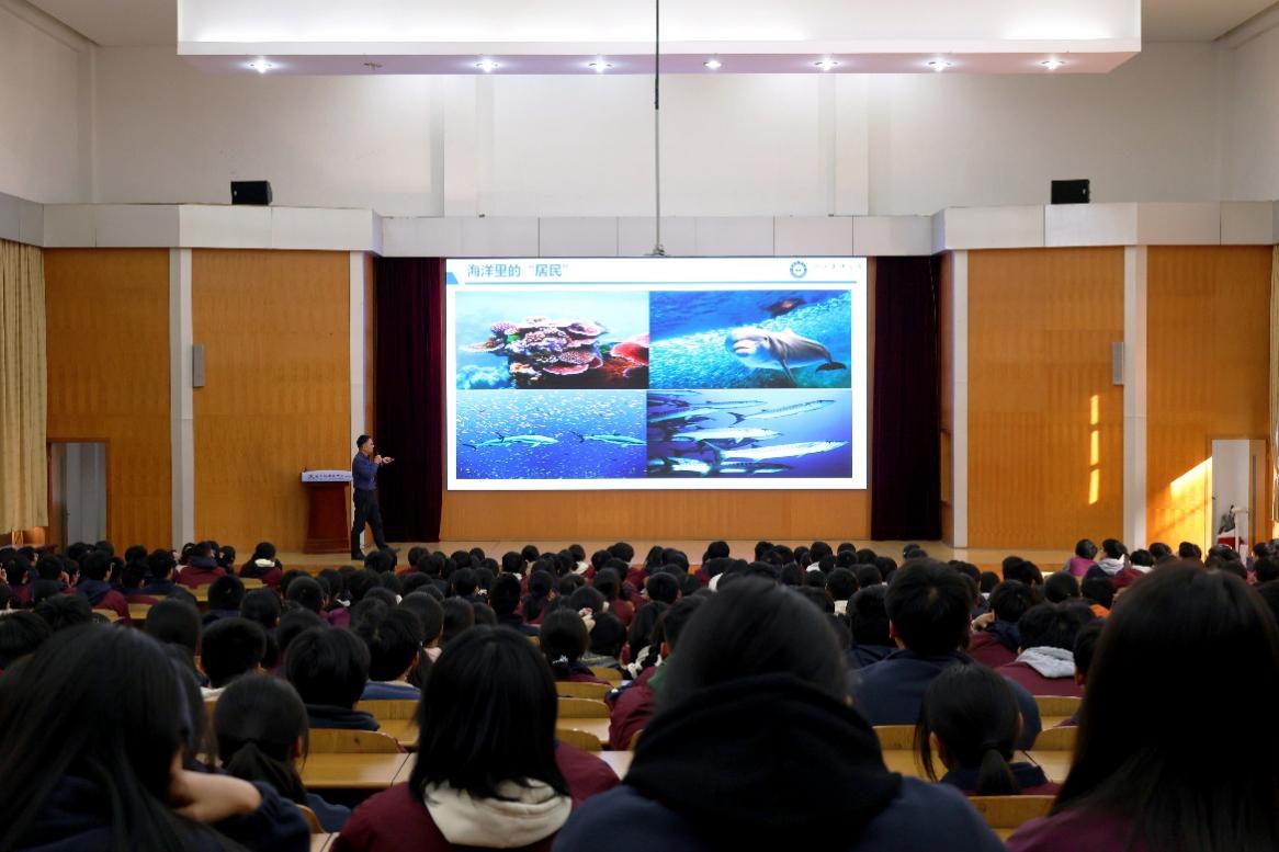 副院长(主持工作)朱文斌教授走进嘉兴外国语学校,为四百多位高一同学作了题为《迈向基于科学的渔业管理》的科普讲座。围绕“海洋与我们”、“渔业内涵”、“科学的渔业管理”以及“责任与未来”四个维度展开阐述海洋可持续发展的现实路径。