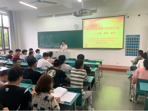 教工第一党支部及海洋渔业系联合开展了一次“师生共话考研与校园生活”活动,对海洋渔业本科学生分析了考研形势,并针对同学们的问题进行答疑、解惑和辅导。