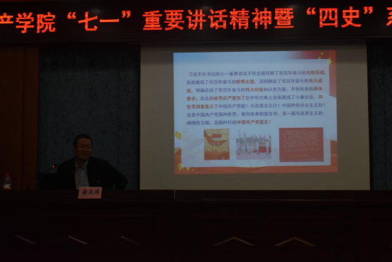 11月4日下午,校党委委员、副校长徐汉祥在校图书馆一楼报告厅为我院师生党员开展习近平总书记“七一”重要讲话精神专题宣讲。学院党委副书记虞浩臣主持宣讲会。