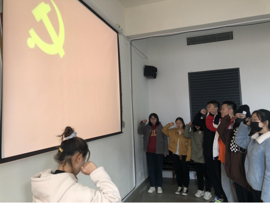 在入党宣誓仪式上,支部组织委员裘丽君进行领誓,预备党员面向党旗,庄严宣誓。每句入党誓词,让全体党员心潮澎湃,再次加深了对党初心使命的认识和理解。