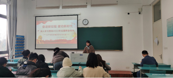 最后,支部书记徐双迪总结发言,他强调支部党员要切实把思想和行动统一到全国两会精神和习近平总书记重要讲话精神上来,要准确把握习近平总书记对新时代大学生的新期待新要求,以强烈的责任担当和时不我待的精神状态,迎接党的二十大胜利召开。