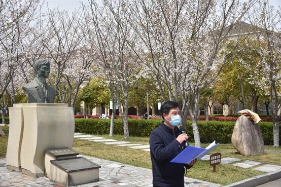 党委和校学工部联合举行“崇尚英雄,缅怀先烈”为主题的王成海烈士祭扫仪式,学院全体师生党员和校党委学工部党员代表出席了本次活动。