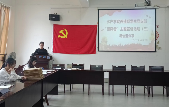 养殖系学生党支部开展第三期“领风者”系列主题宣讲活动,支部党员毛怡清同志分享自己的学习和团学工作故事,把每一件简单的事情做好,把每一件平凡的事情做好,就是不简单不平凡,理想加奋斗,责任加坚守,不忘初心,牢记使命,诠释榜样的力量。