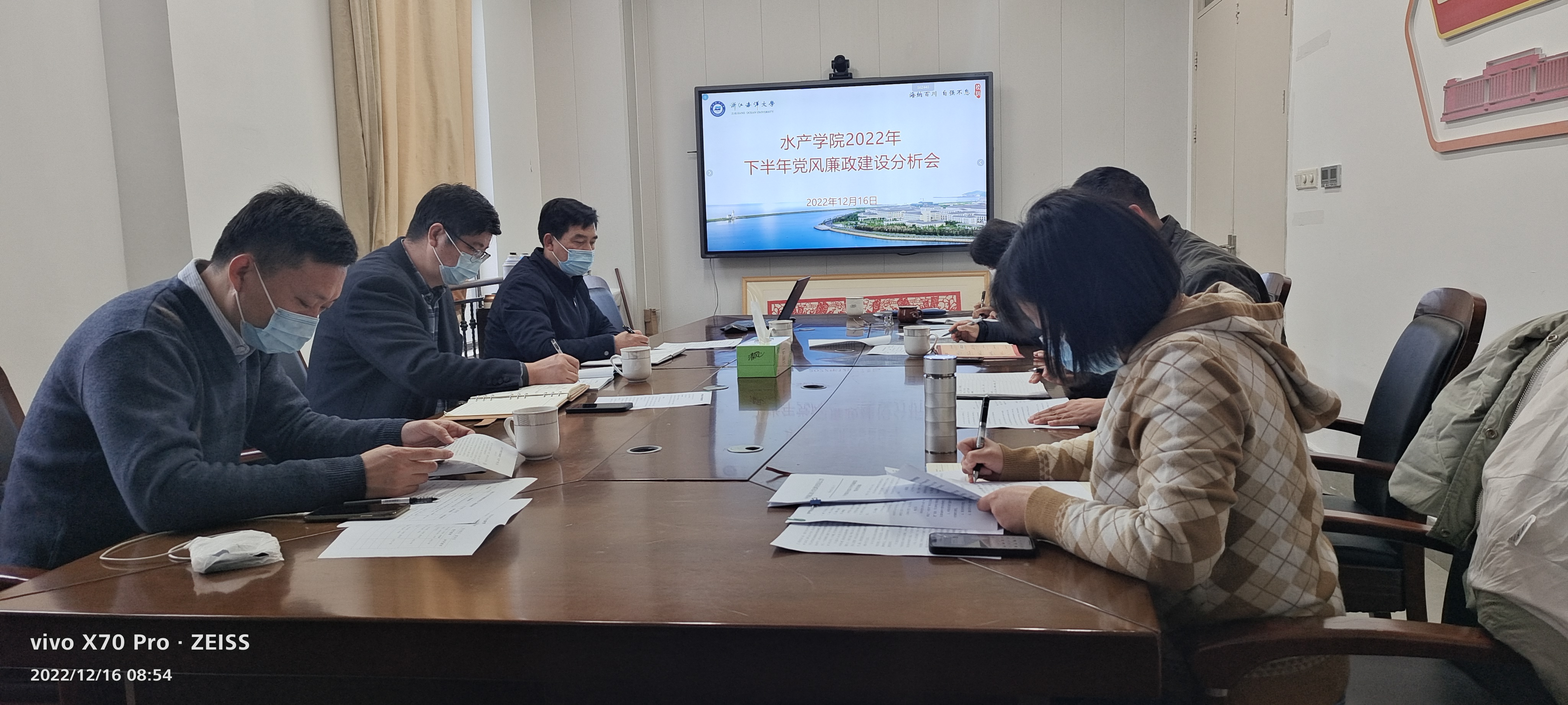 党委在海科楼247室召开2022年下半年党风廉政建设情况分析会。学校党委委员、副校长卢金树到会指导并作重要讲话。会议由学院党委书记虞浩臣主持,学院党政班子成员和纪委班子成员参加。