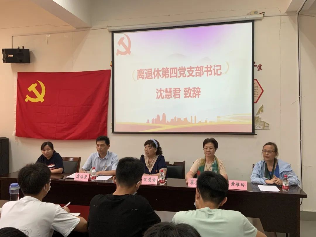 海渔系学生党支部书记林佳老师主持,出席会议的有离退休第四党支部书记、原人文学院党总支书记沈慧君老师,离退休第四党支部党员、原外国语学院院长蔡慧萍老师,离退休第四党支部宣传委员、原人文学院副教授黄雅玲老师和澳门彩