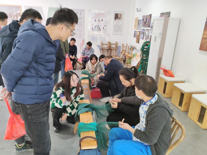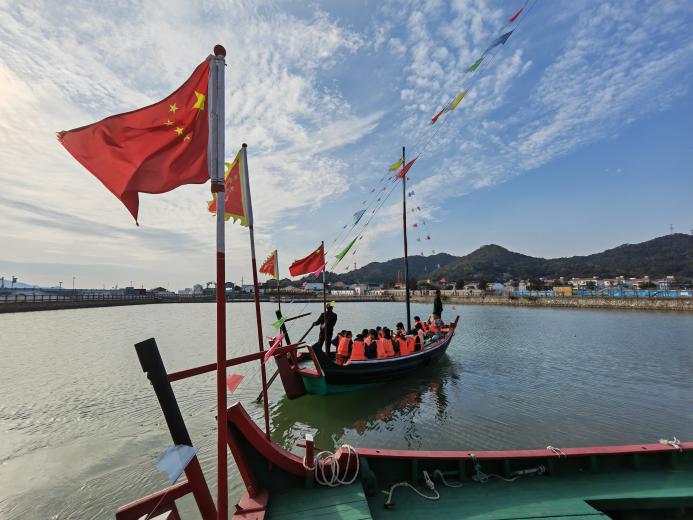 师生们沿着红色印记徒步环岛,先后参观了马金星《军港之夜》词作创作地、全国第一个人民公社旧址、蚂蚁岛创业纪念室、三八海塘等地,现场体验了渔绳制缆、摇撸、织渔网、搓草绳,观看“重走初心路”习近平总书记调研蚂蚁岛视频,听本土老党员上党课,讲蚂蚁岛人民艰苦创业的故事,了解蚂蚁岛的峥嵘岁月,感悟“艰苦创业、敢啃骨头、勇争一流”蚂蚁岛精神的丰富内涵和时代价值。