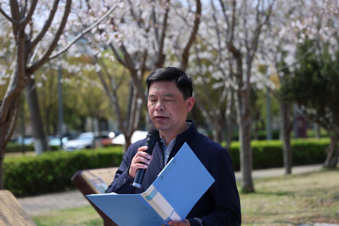 成功广场上,王成海烈士纪念雕像肃穆而庄严。师生党员们怀着无比崇敬的心情,整齐列队,手持菊花,低头静立,向为人民革命事业英勇献身的王成海烈士默哀,表达对先烈的深切怀念和崇高敬意。在祭扫仪式上,学院党委书记虞浩臣同志代表全院师生向王成海烈士致悼词以表达对前辈楷模的哀思和怀念。同时,虞书记号召师生党员们要继承好王成海烈士的遗志,在学校加快转型突破、申博关键之际,在第二次党代会召开之年,勇当使命,主动作为,高质量回答好“海大之问”,为推动学校和学院高质量发展贡献水产人的全部智慧和力量。