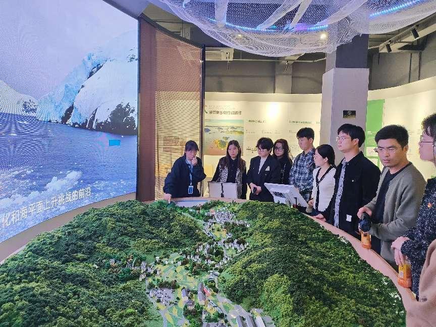 在新建文化大礼堂,大家通过视频和地图模型直观地感受到了新建社区如何从一个依山而居、位置偏僻的普通海岛村落,发展转型成为渔村的典范,逐步成为著名的“网红村”、“示范村”,这样翻天覆地的变化深刻地诠释了习近平总书记关于共同富裕的系列重要论述和“绿水青山就是金山银山”这一发展理念的科学内涵与深远意义。