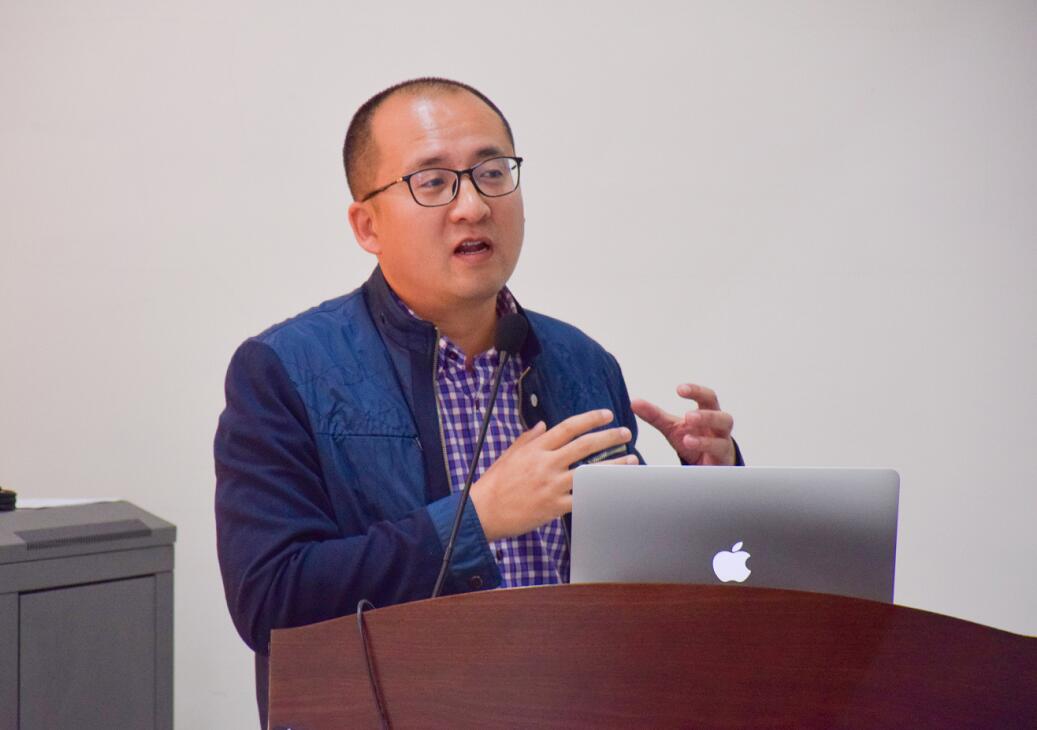 党委副书记姜华帅老师主讲,学院全体教工和学生党员参加了此次党课。