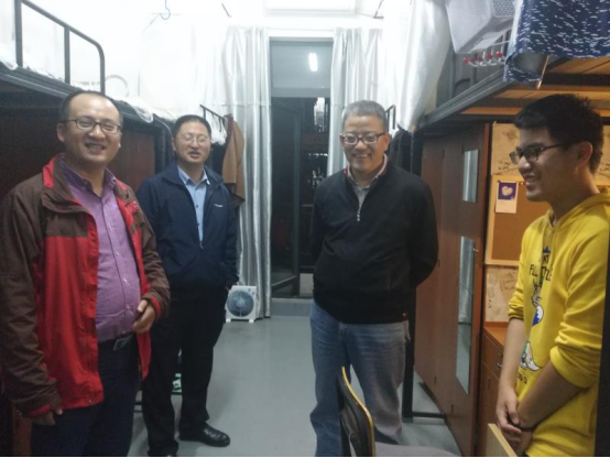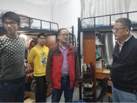 院党委书记许文军、副书记姜华帅陪同下走访M幢所联系的学生寝室。