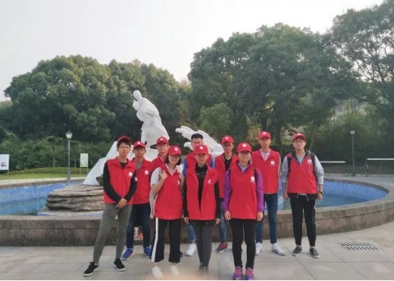 志愿者们在浙江海洋大学定海校区大门集合后,乘公交车到达了翁山公园,进行了为期半天的志愿活动。