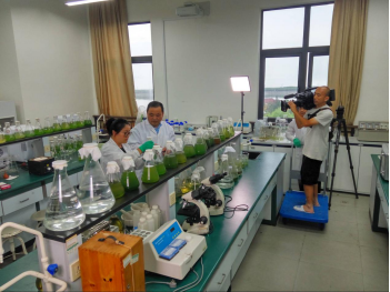 实验室,栏目组跟随项目组成员采访了菌株的分离和单胞藻的培养以及养殖废水处理零排放的生态操控系统的实验模型,了解从实验室走向应用的过程。
