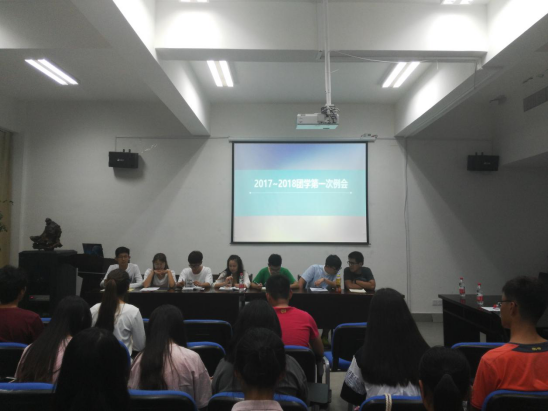 新任团学干部第一次会议于海科楼263召开。团学所有新任学生干部均参加了此次会议。学院团学负责人金枫老师出席了本次会议,会议由郭延泽主席主持。