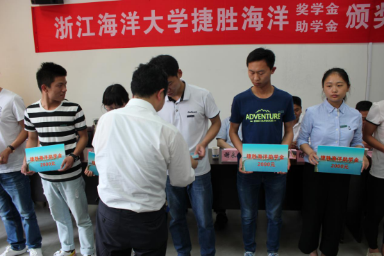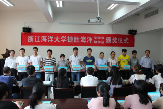 2017年5月26日,浙江海洋大学捷胜海洋装备股份有限公司奖学金助学金颁奖仪式于海科楼263会议室顺利举行,参与的人员有捷胜海洋装备股份有限公司副总经理陈勇、综合部副经理祝小利、浙江海洋大学副校长谢永和、研工部部长、研究生处处长李强、船舶与机电工程学院书记冯相忠、澳门彩