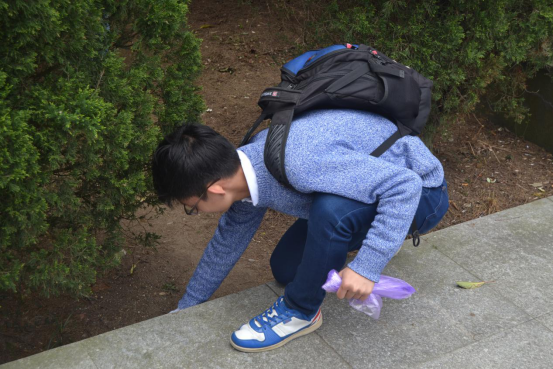 同学们从山脚沿着阶梯往山顶方向前进,林中小路崎岖,路上看到烟头、果皮、塑料袋等垃圾的时候,都会弯下腰,细心地捡起来放进随身携带的垃圾袋中。虽然爬山已经令同学们十分疲惫,但是同学们仍乐此不疲的做着清理工作,游人丢弃的饮料瓶、随风飘荡的塑料袋、枯枝落叶等等都被捡起扔进携带的垃圾袋内。经过同学们的一番清理,洁净的公园和明媚的春光更加相配。