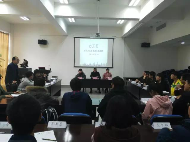 首先,姜华帅老师简要介绍了中日两国的交往历史,着重讲解了历史遗留的问题,钓鱼岛争端,春晓油田争议,日本插手南海,参拜靖国神社五个话题。之后,同学们各抒己见。裘丽君同学就参拜靖国神社提出自己的观点;蔡新晨同学认为我们应该多关心自己的国--中国。孙国际、富海仑、李福民、陈颖聪等同学就中日两国战争进行讨论,各执己见。李文豪同学借用周恩来总理的一句话“两千年的友好,五十年的战争”来概述观点,随后在场的26位同学都发表了自己的看法。随后,在场老师也发表了各自的观点。傅老师认为中日交流越来越密切,日本虽小,但是仍然值得我们学习,比如他们对传统文化和团队合作的重视;卢老师则赞扬了同学们独立思考和勇于表达的能力;周老师总结日本是个非常善于学习的国家,我们也要以大国心态向世界各个民族学习,但中日关系仍存在瑕疵,日本政府在历史问题上的认知无法得到中国甚至是亚洲人民的谅解,同时我们要看清中日关系背后的中美关系,日美关系。