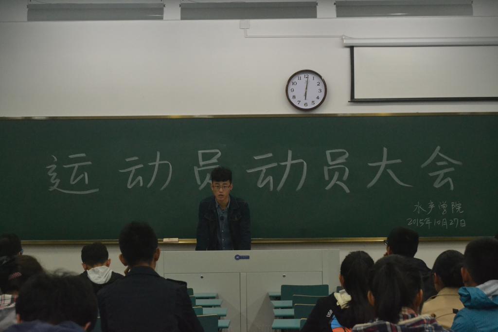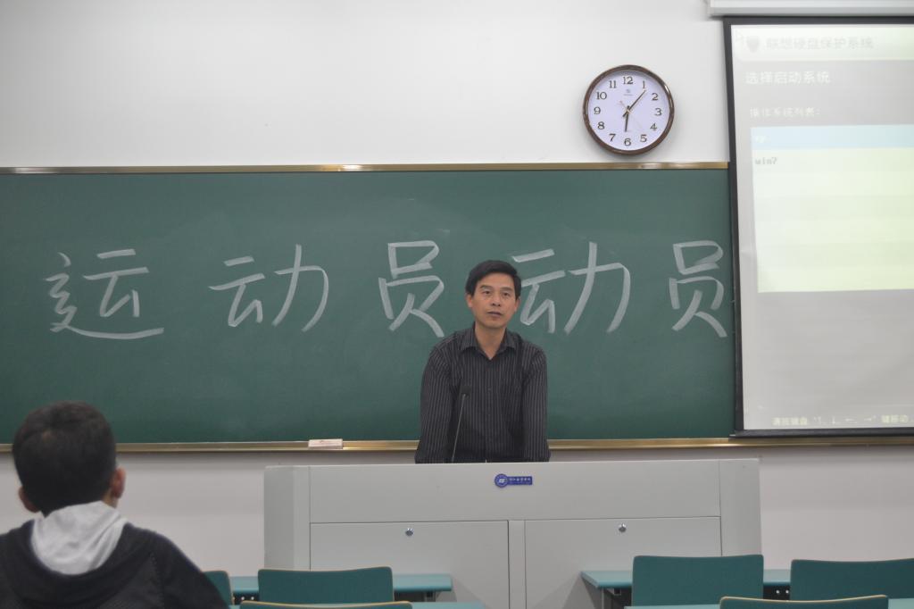 运动会动员大会,出席此次大会的有党委副书记虞浩臣、学生会主席团、部分学生干部和全体运动员。此次会议由学生会副主席林腾辉担任主持人。
