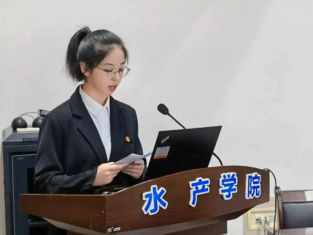 学生会作学年工作报告。报告中,殷春燕同学对本学年学生会工作内容、工作重心进行总结,集中展现了水产学生会推陈出新、积极创新的精神,积极体现了我院学生干部秉持为民服务的初心,维权服务、宣传工作逐步到位,各项学生工作正稳步扎实地推进。