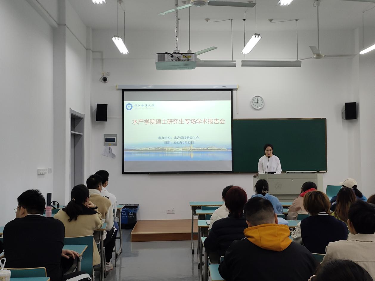 辅导员盛剑列席。来自Y20水产、Y21水产的19名硕士研究生就他们各自领域研究的结果进行汇报展示。