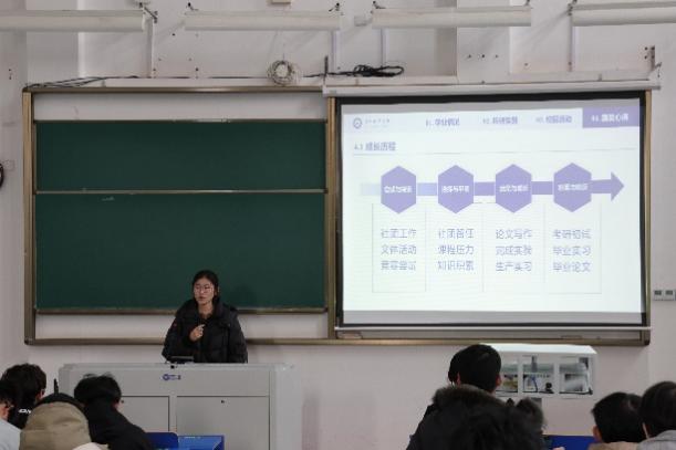 王奕梦同学以“奋斗是青春最美的底色”为主线,系统阐述其从普通学生到学术尖兵的进阶路径。她结合自身经历,提出“四维时间管理法”,即“以课业为基、以科研为翼、以实践为桥、以兴趣为帆”,强调通过阶段性目标分解实现高效学习。随后,通过展示参与各类学术竞赛、发表核心期刊论文的经历,她深入剖析科研素养培养的关键要素,提出“文献精读-问题凝练-创新设计”的科研闭环思维。
