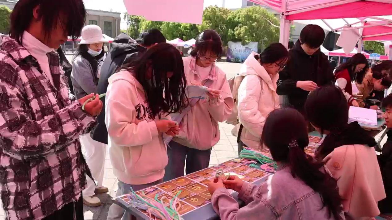 摊位前,同学们根据制作图解,将彩色扭扭棒在手中弯曲、缠绕、拼接,简单的动作间,小鱼、水母等海洋生物逐渐成形,活灵活现,连路过的小朋友都忍不住驻足,跟着大家学起了“扭棒魔法”。经过大家的精心制作,摊位前于是就出现了各种五颜六色、活泼可爱的海洋生物。