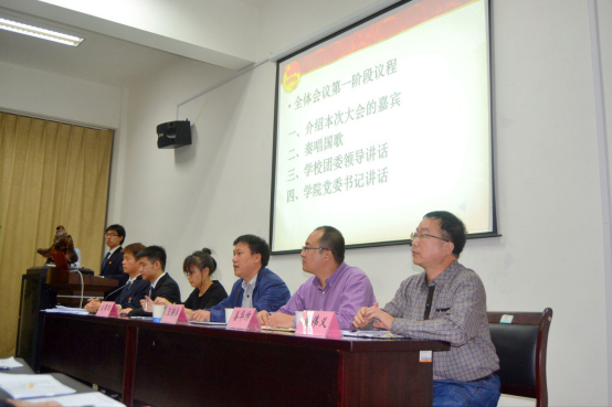 党委副书记姜华帅老师、学工办主任董伟义老师,以及来自学院的77名团员代表。正式会议分三个阶段,由分团委副书记张少秋同志主持。