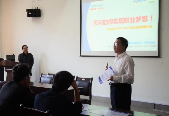 11月4日中午12::30,宁波天邦股份有限公司招聘宣讲在海科楼263准时开始。首先,董伟义老师发表了讲话,他给予了同学们美好的祝愿,并且讲解了现在的就业形势,希望大家抓住每一个机会,为自己的人生做好充分准备。 公司工作人员随后对公司进行了一个系统的介绍,向同学们解释了薪资待遇,企业理念等等方面,并阐述了天邦公司比同类型的公司强在哪里,表达了对人才的渴望。