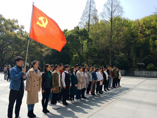 同志们首先来到了位于舟山市海山公园的烈士墓前,在革命英雄纪念碑前举行了隆重而庄严的扫墓仪式。陵园中的纪念碑上刻着“林茂成革命烈士纪念碑”几个刚劲有力的大字,在周围那郁郁葱葱的苍松翠柏的衬托下,显得格外醒目。此时此刻,同学们的心情格外沉重,他们没有了往日的喧闹,没有了嬉笑声,都静静地肃立着。入党积极分子代表向纪念碑敬献了花圈、鲜花,代表着新一代青年学生对烈士们的崇敬与尊重,然后全体成员默哀三分钟并深深弯腰鞠躬向烈士们表示沉痛的哀悼。面对着党旗,徐娜娜老师带领全体党员进行了庄严的宣誓仪式,向党表达了“为共产主义奋斗终身,随时准备为党和人民牺牲一切”的坚定信念。最后大家参观了舟山烈士事迹陈列馆,了解了这些革命先烈的伟大事迹,他们的精神永垂不朽,党员同志们深有感触,认识到自己身上肩负的历史重任,更要努力奋斗,珍惜如今的幸福生活。