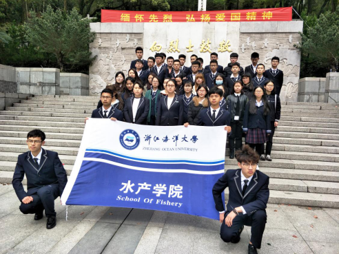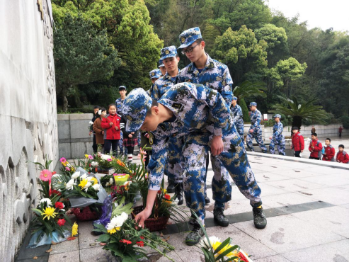 学生代表朱怡和许贤广发言表达对革命烈士的敬意,号召水产学子向先辈们学习无畏的奉献精神和勇敢的拼搏精神。发言完毕后,各位同学静肃地走向墓碑前,献上手里的鲜花,悼念沉眠的先辈。献花完毕后,全体成员于烈士纪念碑前集合,集体宣誓,承诺学习无坚不摧的革命精神、严明的纪律,以崭新的面貌、积极的态度,投入到学习生活中去,表达对先辈的敬仰之情。宣誓完毕后大家再次清扫陵园,然后去参观烈士事迹陈列馆,了解并学习先辈的优秀革命事迹,塑建自身崇高的革命品格。
