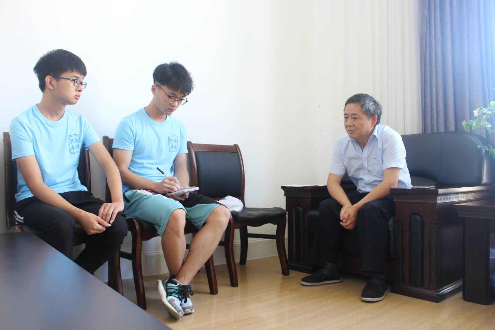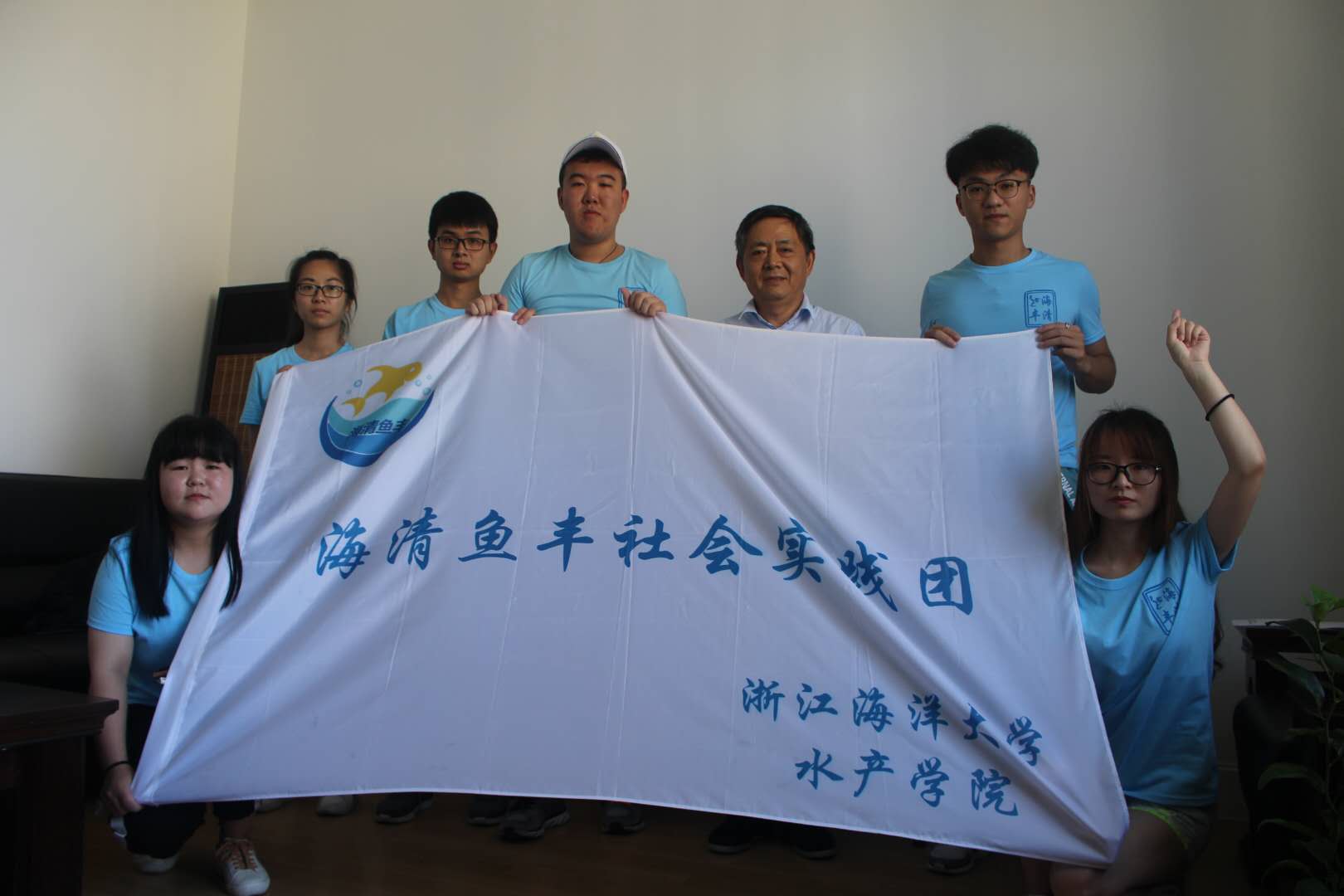 7月13日,“海清鱼丰”实践团经过前期的细心策划和准备,开始了团队的第一项活动——渔业专家访谈。团队联系到了渔业专家虞聪达教授,并在浙江海洋大学行政楼接待室进行了访谈交流。